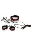 Sometimes all you crave is to lay back and let your partner take control of your every sensation. The Scandal Submissive Kit provides everything you’ll need to experiment with the world of dominance and submission. The set includes gorgeous red and black brocadecuffs that are totally adjustable and a perfect fit for both wrists and ankles. You’ll love the soft, plushy interior that keeps you comfortable no matter how hard you strain against the cuffs. The luxurious, dual-sided collar will have you trembling with pleasure and anticipation as the cool metal chain brushes against your skin and reminds you who’s in control. For the adventurous, the set of two adjustable multi-use clamps will pinch and pleasure your most sensitive spots to the point of utter ecstasy. Just clip them onto your nipples, lips, or any other erogenous zone and twist them tighter until your skin is radiating with pain and pleasure. They feature soft, comfortable pads to keep your play safe and enjoyable. To play with sensation and relinquish total control to your partner, slip on the stretchy red blindfold and experience the dark side of sensual encounters. Your waves of pleasure will be heightened and your senses magnified with the loss of sight: Every bite, kiss, lick, and caress will feel all the more intense. Experiment with one toy at a time, or make your play a true adventure and use them all at once. Be naughty tonight and play with power
