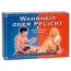 The erotic cult game for long party nights lets you get to know your partner or the other players properly and provides for an erotic mood. 75 intimate questions and 75 astonishing challenges provide for a game full of humour, tension and revelations. A throw of the die determines whether you have to answer an intimate question or perform a saucy act. Card game for 2-8 players. Contents: 1 die, 2 decks of "must" and "truth" cards.