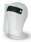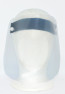 Face shield visor made of transparent plastic, black frontlet with elastic headband