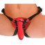 Strap-on harness with a removable dildo. Bulging dildo with a suction cup – it can also be used on its own and even hands-free. It can be attached to the harness really quickly because of the ring and press studs on the harness. The ring also means that any dildo/vibrator with a suction cup can be attached to the harness. The strap-on harness can be adjusted for a non-slip fit.